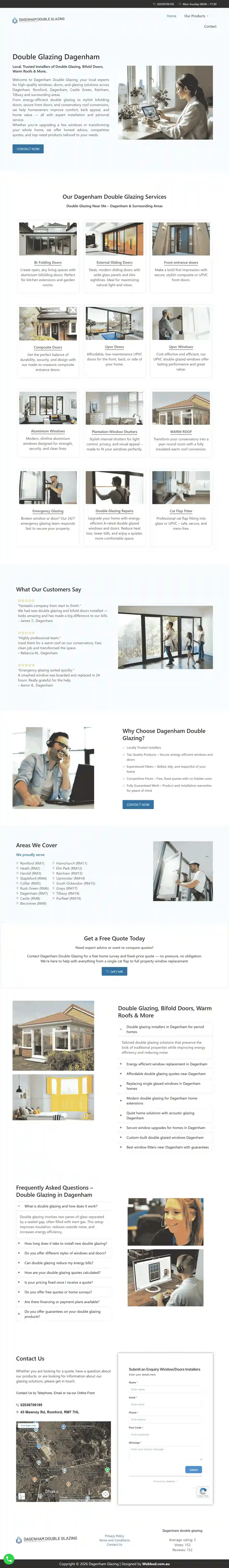 Solution: Redesigned and optimized the site to present clear information about double glazing, doors, and window installation services for homeowners in Dagenham and nearby areas.
